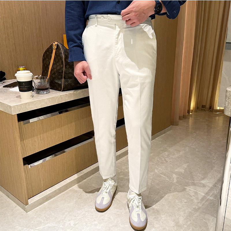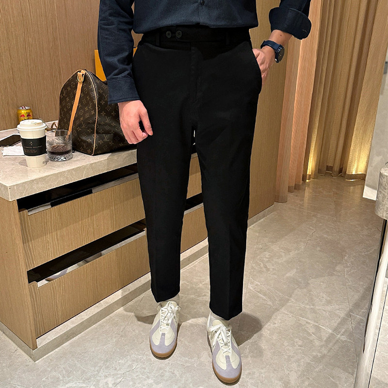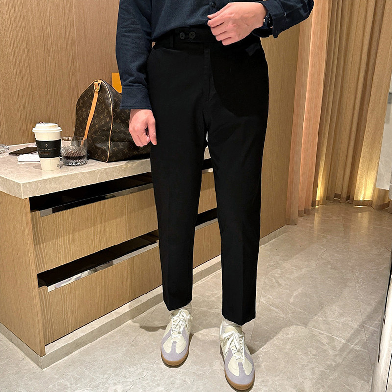 高级感黑色修身九分裤男款 秋季新款纯棉直筒裤子男白色休闲裤男