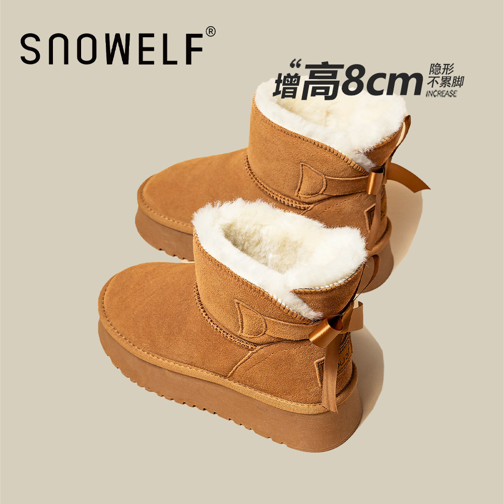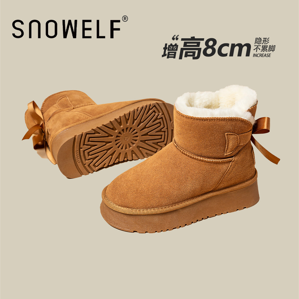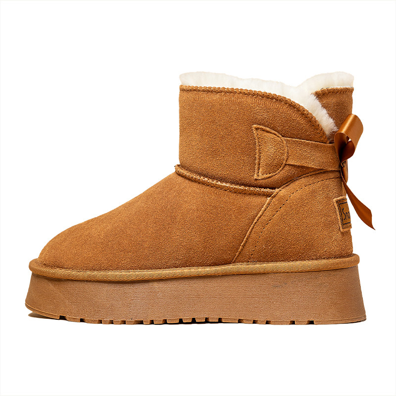 短筒蝴蝶结厚底雪地靴女2025冬季新款加绒加厚防水防滑内增高棉靴