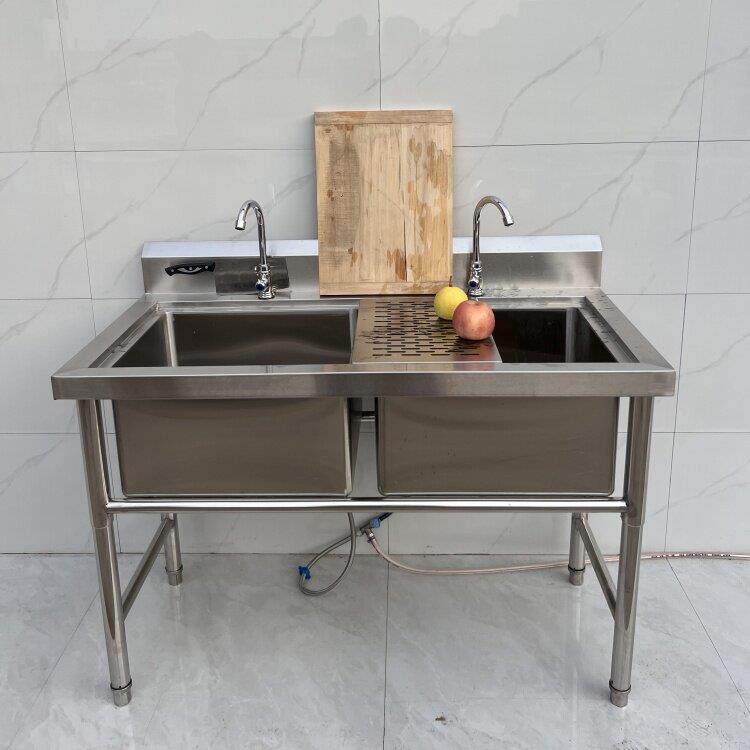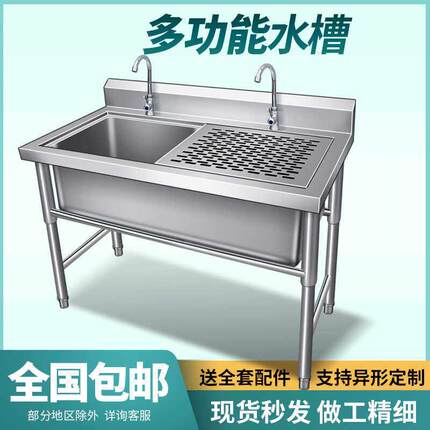 商用不锈钢水槽厨房304单槽洗刷池带操作台洗菜盆洗碗池食堂水池