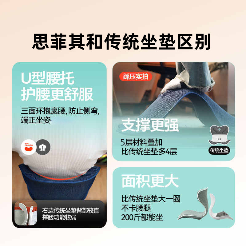 思菲其花瓣护腰坐垫矫正坐姿办公室久坐神器人体工学椅美臀腰靠垫