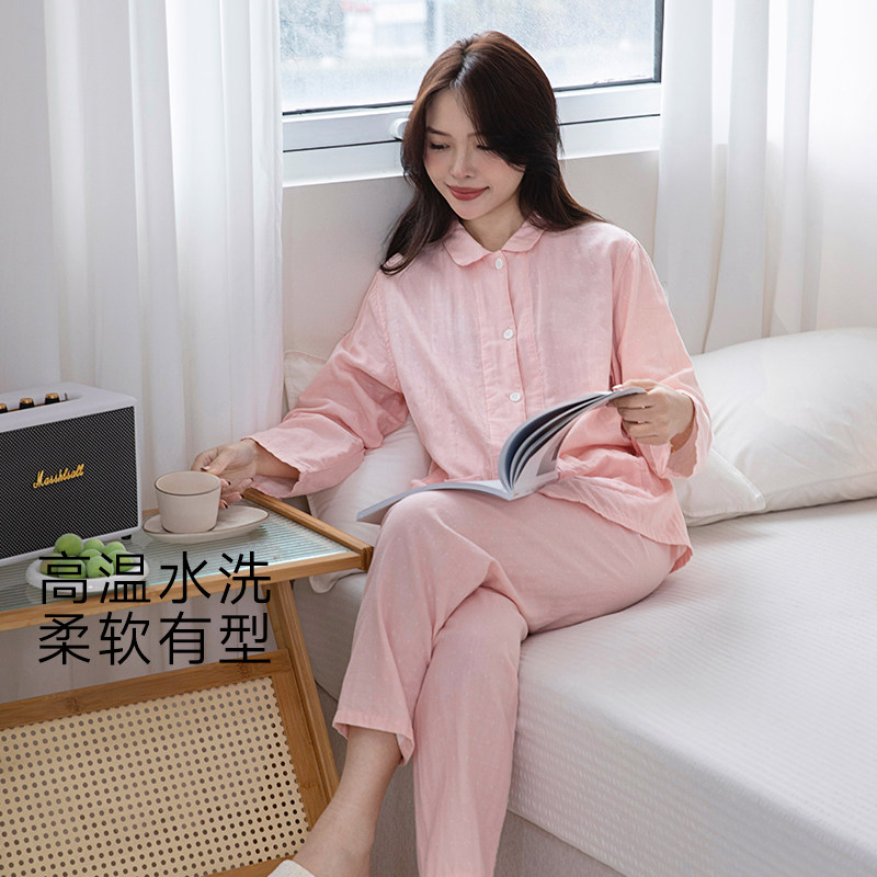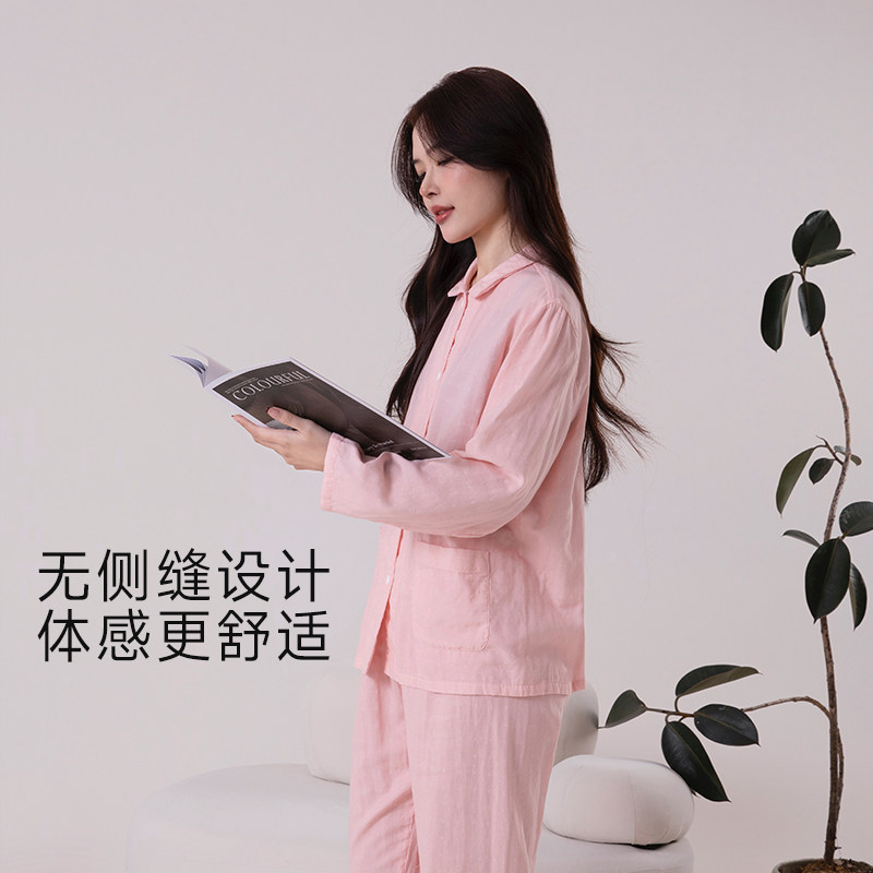 宜色家家居服新款春夏双层棉纱睡衣情侣款睡衣长袖套装旗舰店