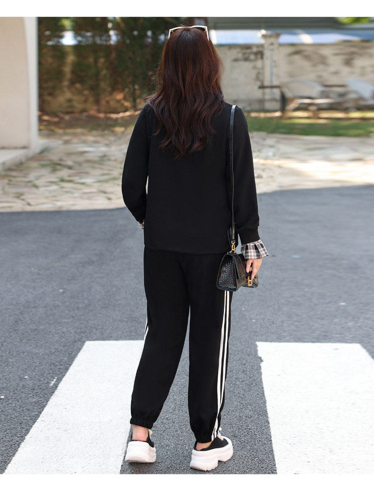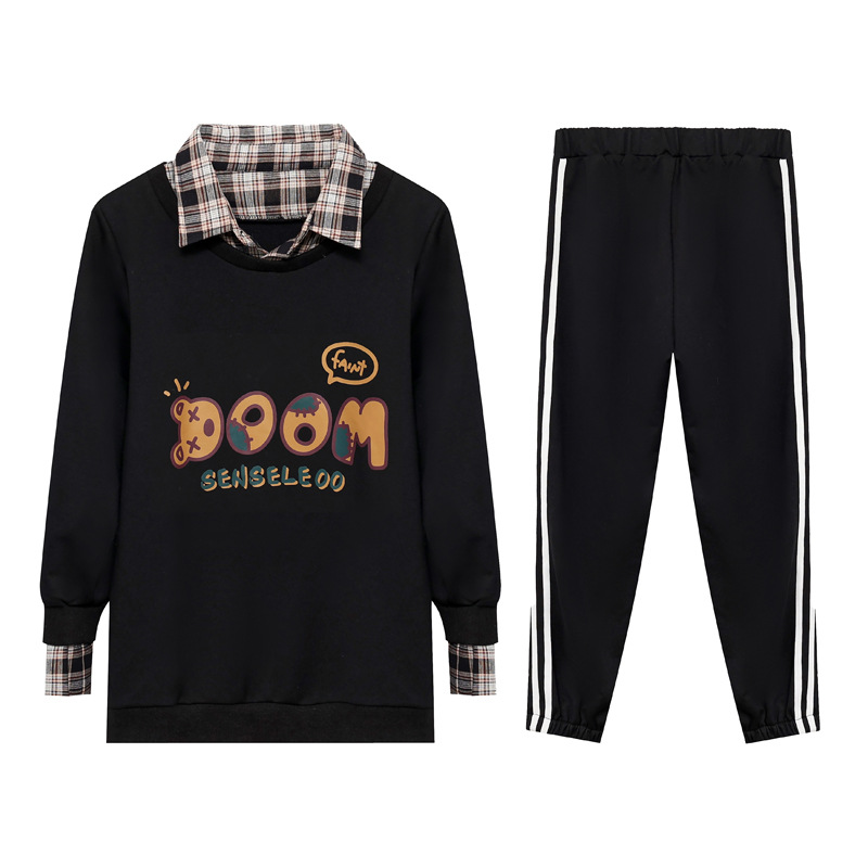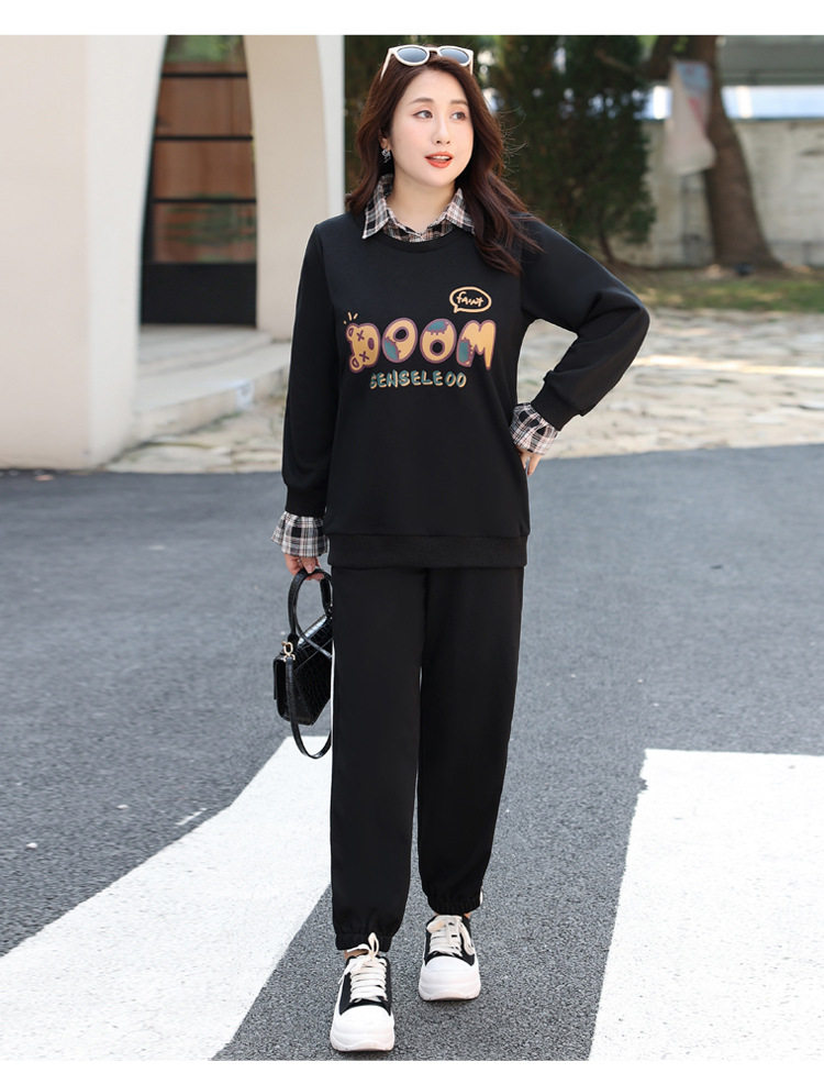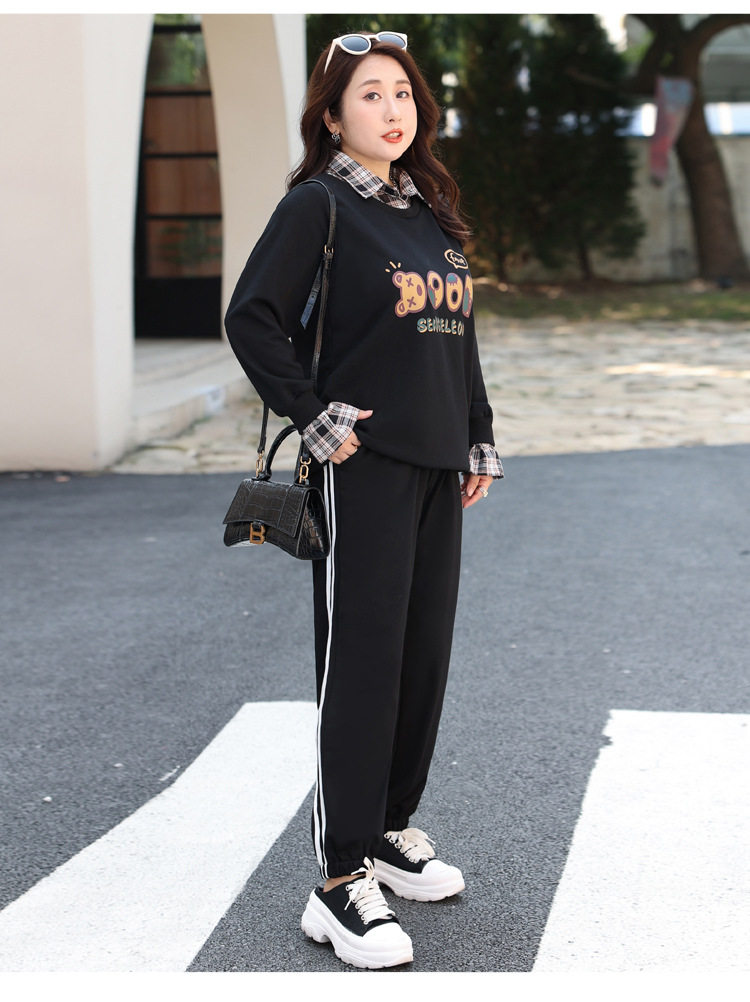 300斤特大码假两件卫衣休闲裤套装女秋冬200胖mm显瘦洋气时髦加肥