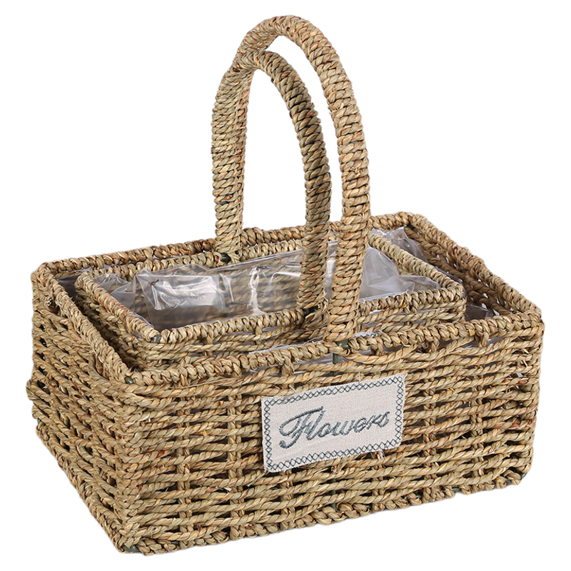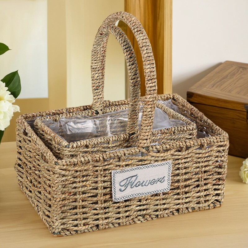 厂家节日伴礼品包装草编提篮鲜花提手提插花藤编手提花篮花盆编织