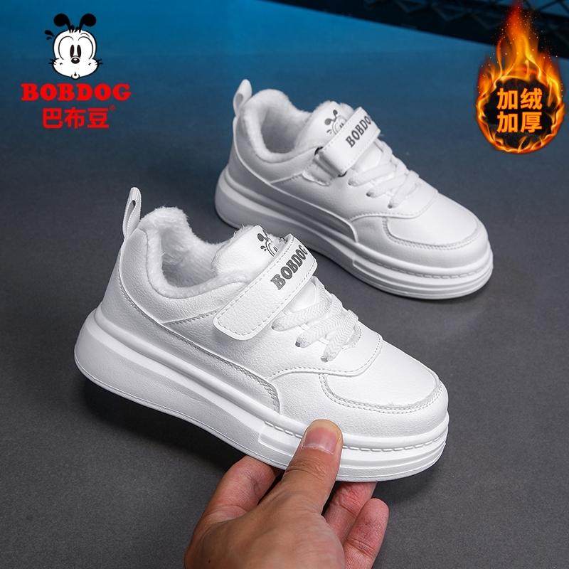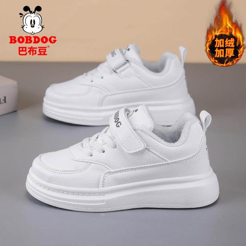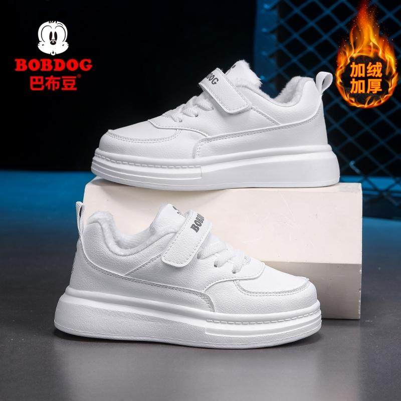 巴布豆冬季纯白男童棉鞋加绒保暖二棉儿童小白鞋小女孩表演鞋板鞋