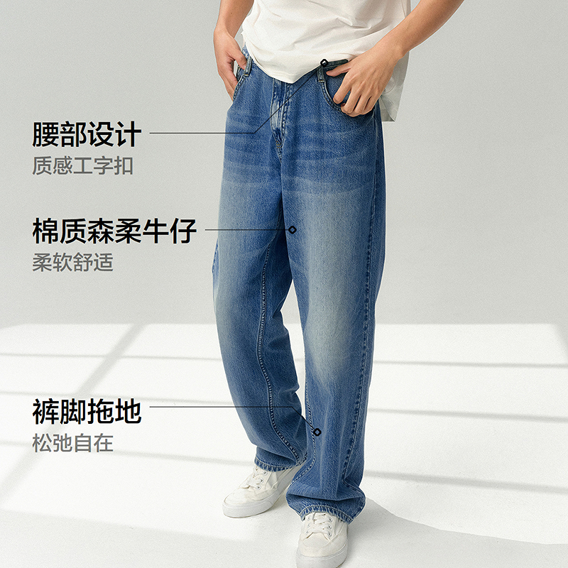 商场同款男裤夏小直筒森马牛仔裤男2025新款宽松棉质时尚薄款裤子