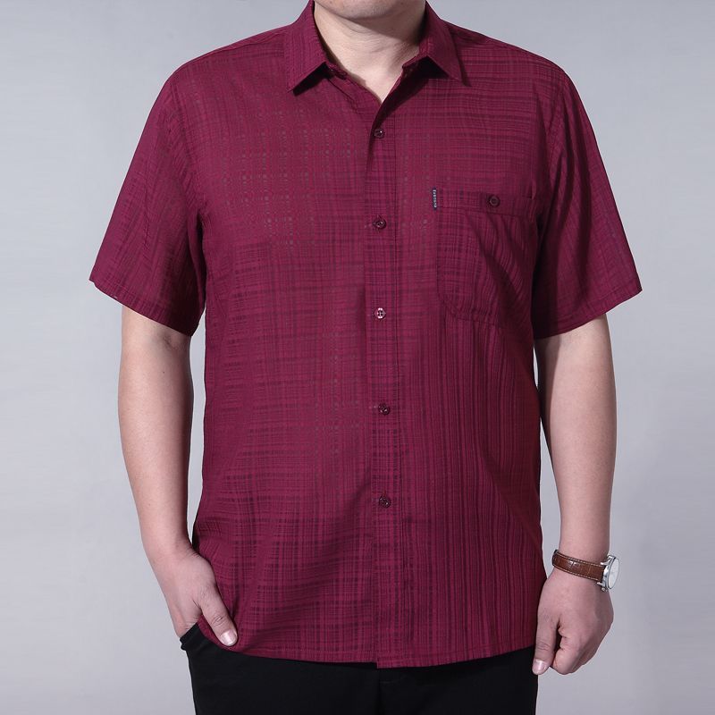 2025新款中老年冰丝衬衫男士短袖夏季薄款休闲宽松爸爸装格子衬衣