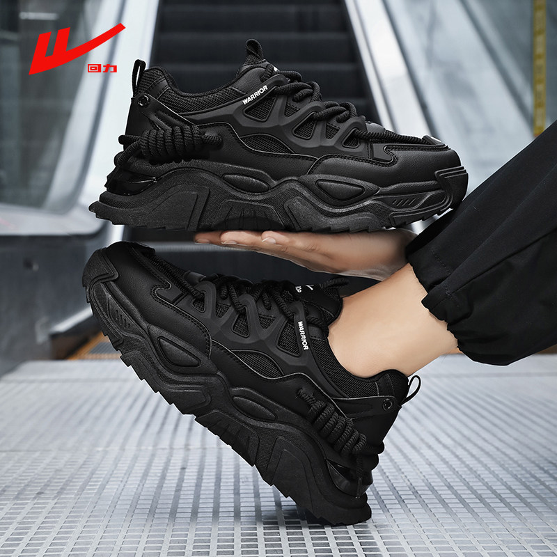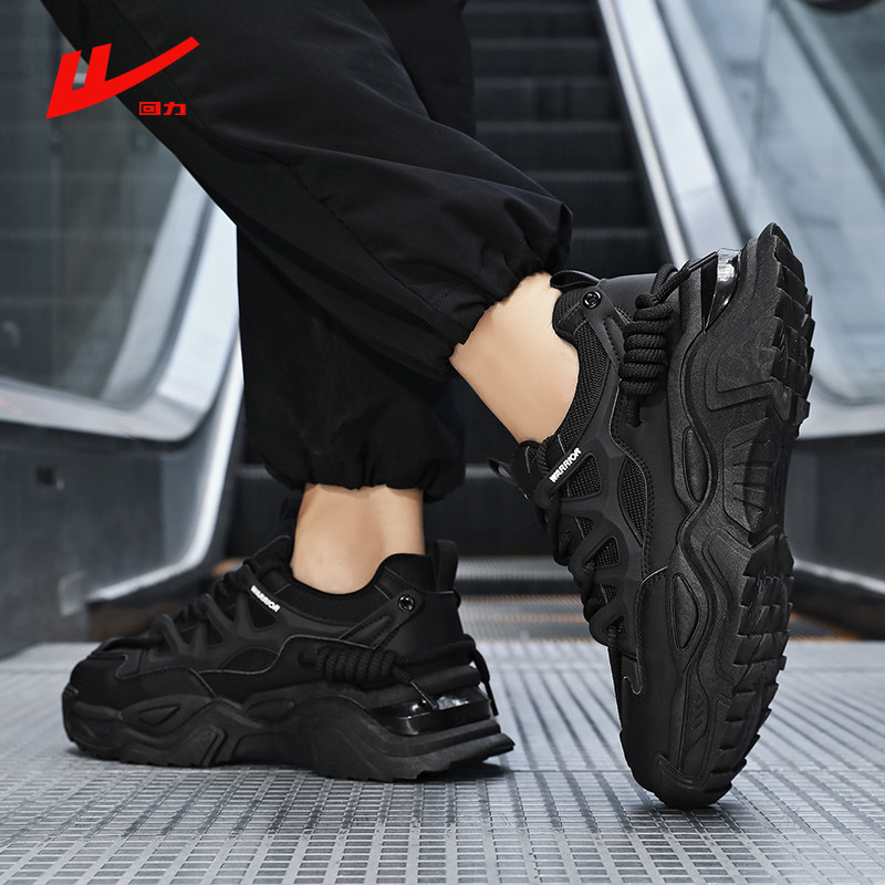 回力官方旗舰店男鞋全黑色老爹鞋