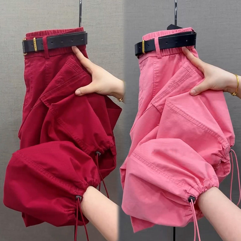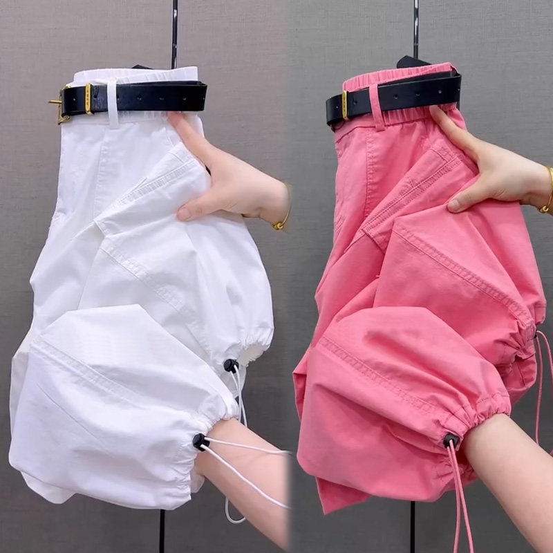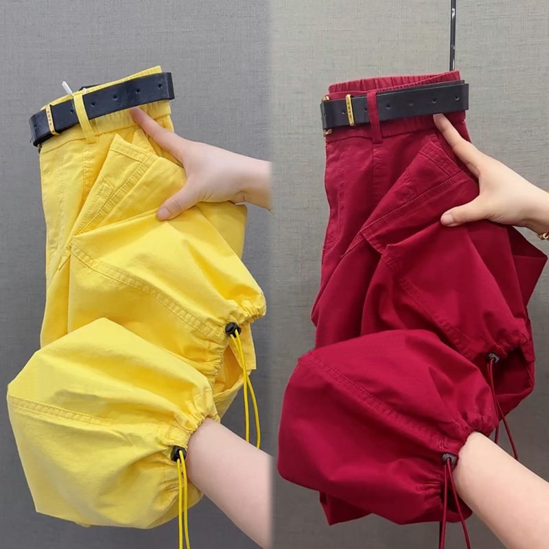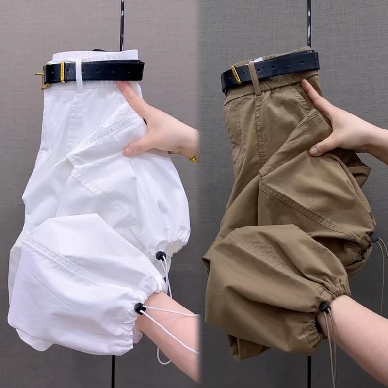 纯棉九分工装哈伦裤女夏季薄款
