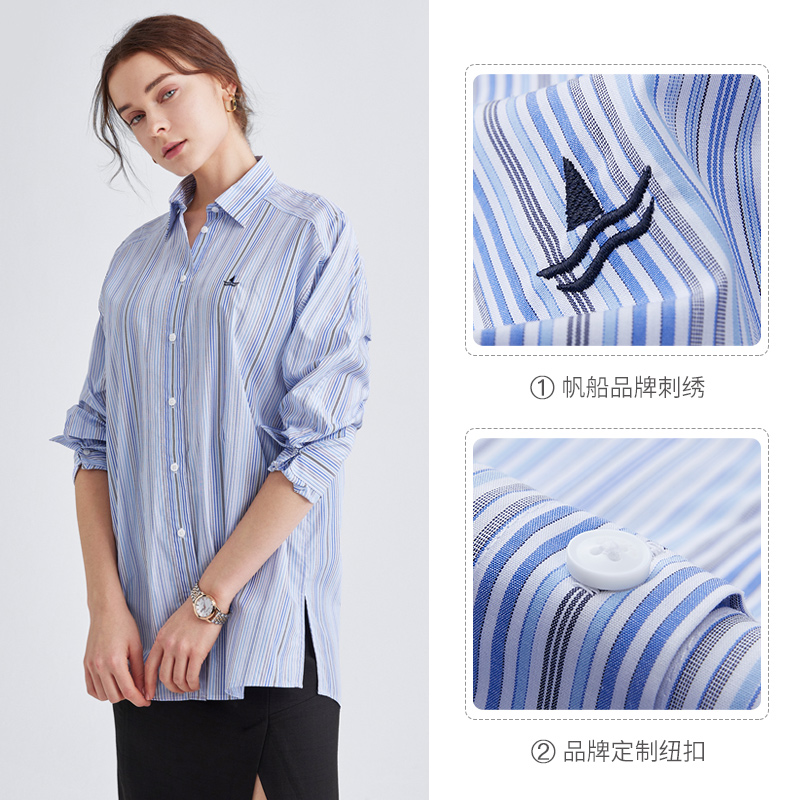 Navigare意大利小帆船蓝色条纹长袖衬衫女秋季宽松衬衣