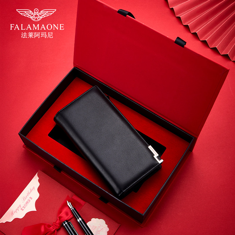 法莱阿玛尼钱包男长款真皮2025新款高档礼盒送男友礼物手拿包皮夹