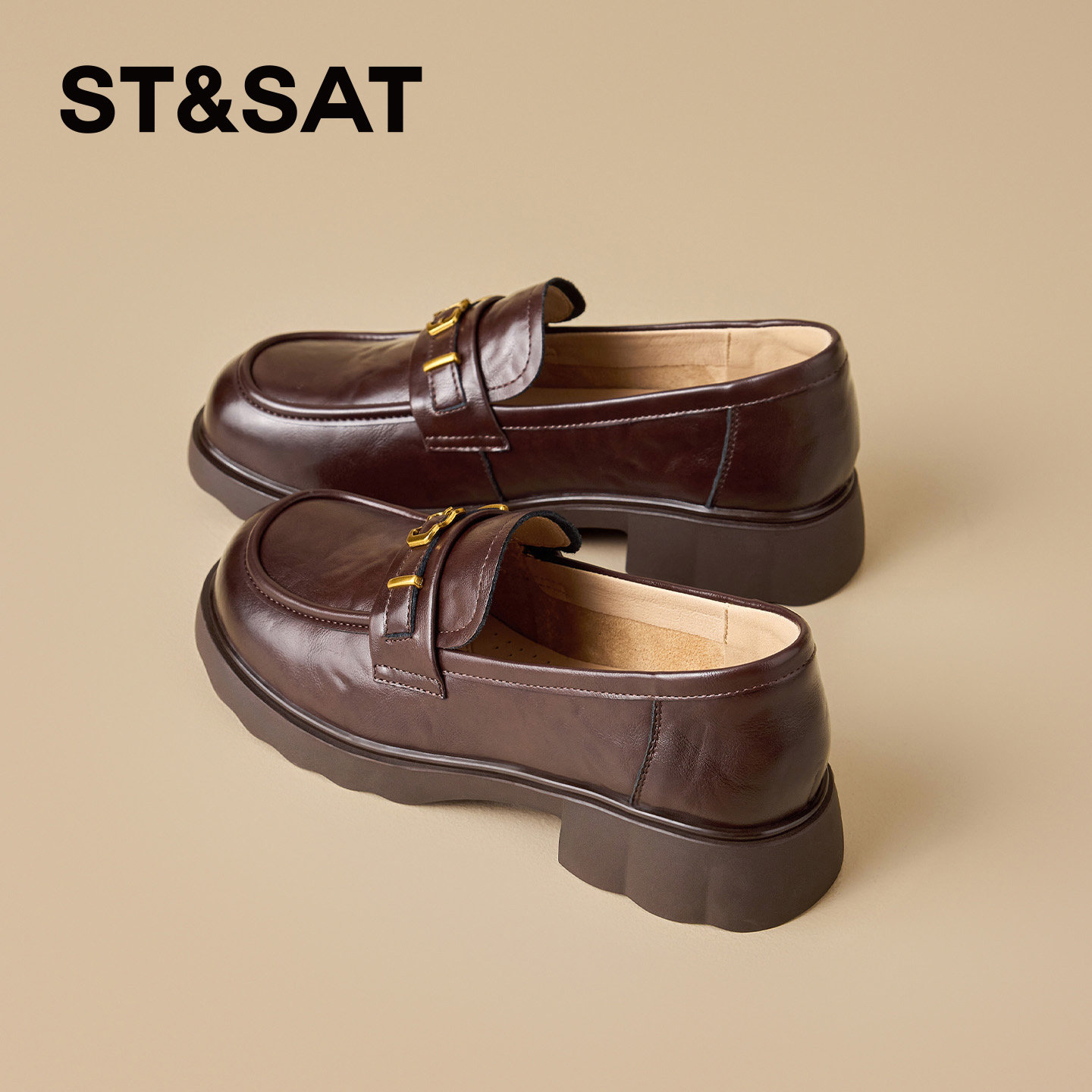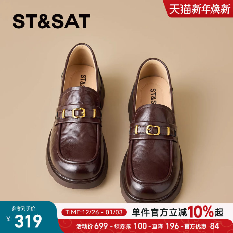 星期六厚底乐福鞋女款2025年冬季新款一脚蹬懒人英伦风圆头小皮鞋
