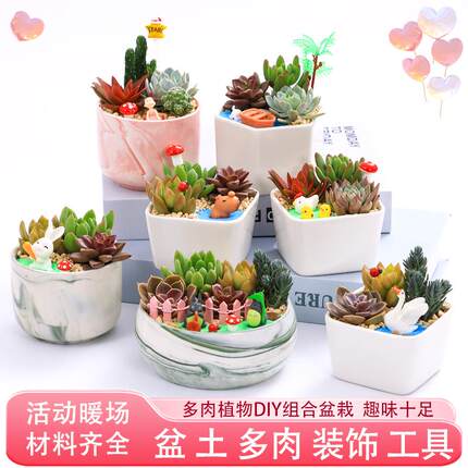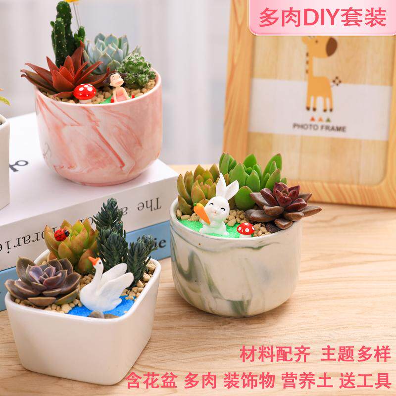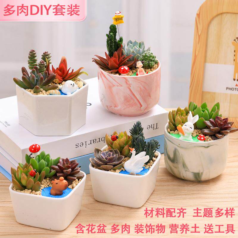 多肉植物手工DIY创意微景观材料包含盆含土多肉陶瓷花盆组合盆栽