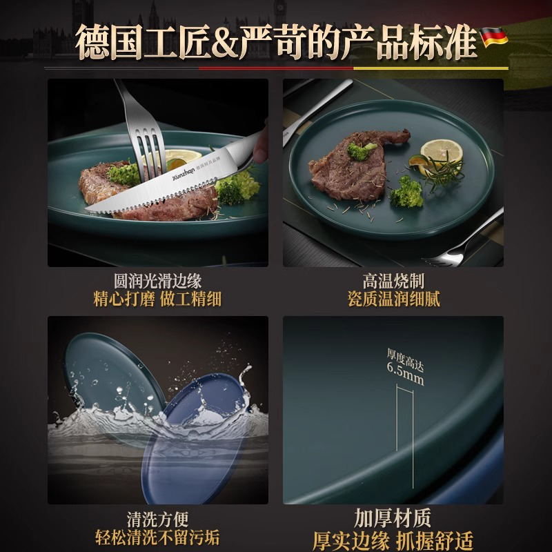 德国kunzhan西餐牛排盘子陶瓷火锅配菜盘家用饺子圆托盘ins风网红