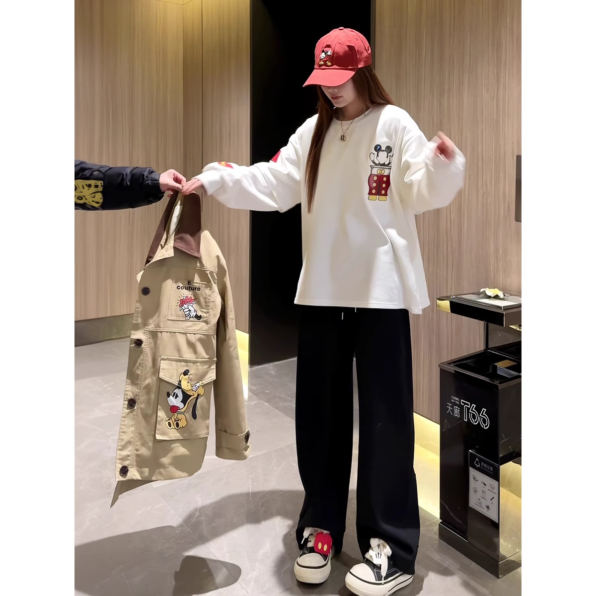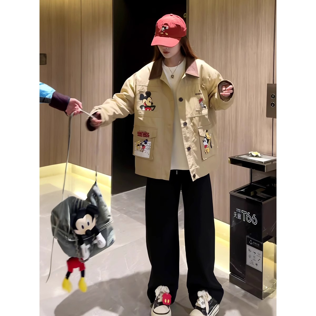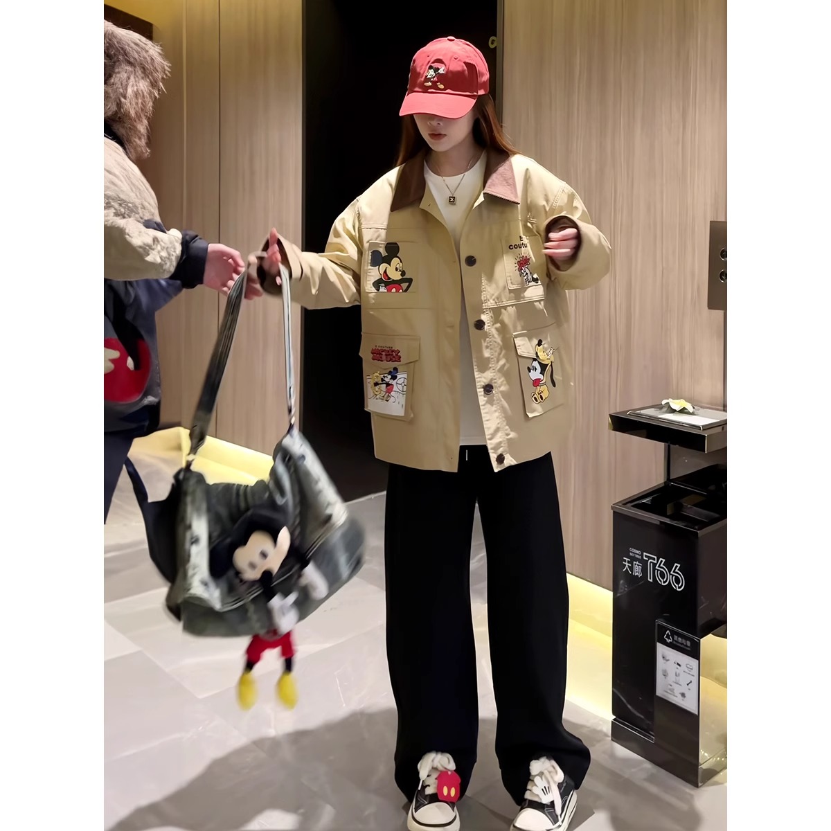 春秋新款韩国东大门减龄卡通趣味米奇工装外套女宽松显瘦夹克上衣