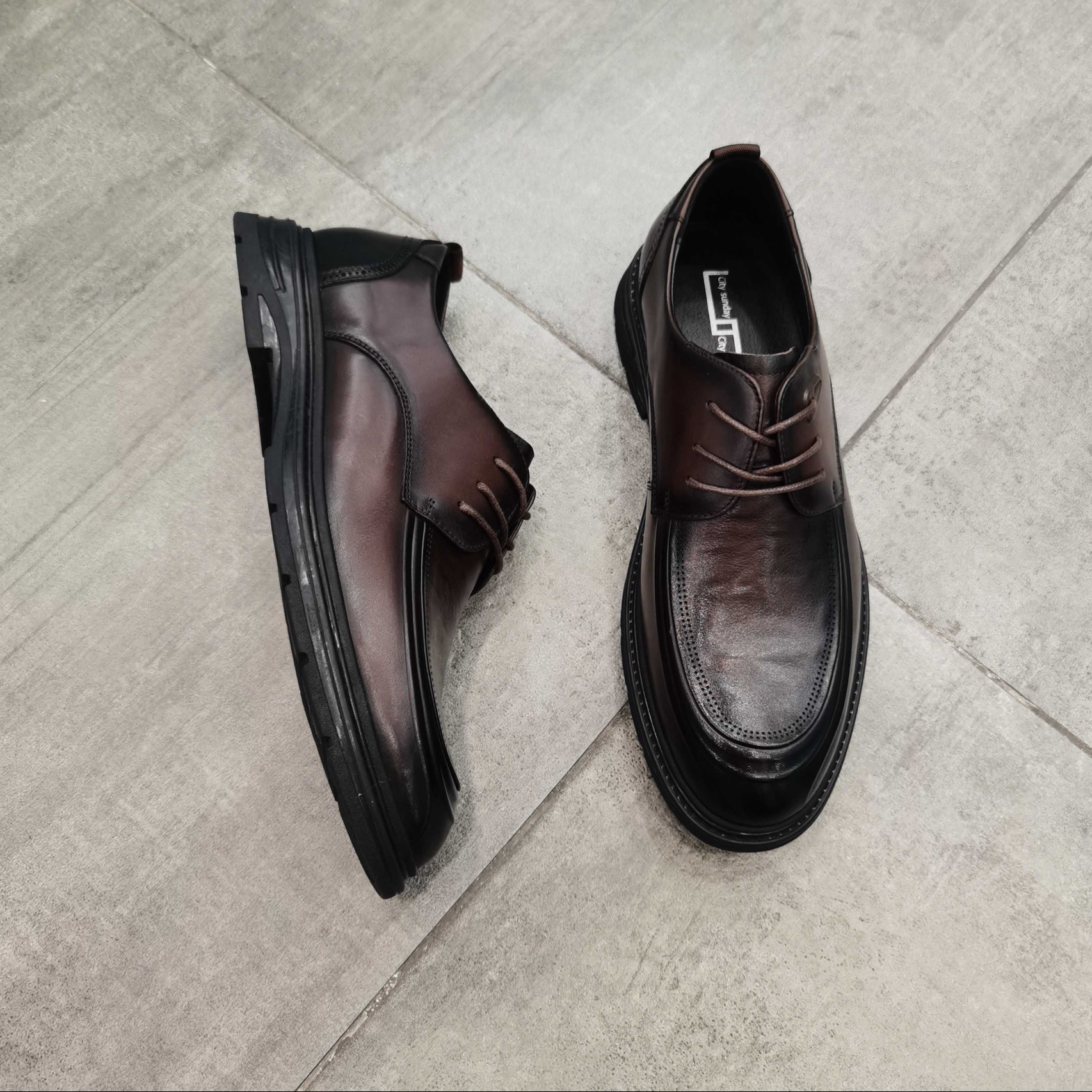 都市星期天专柜正品2025年新款秋季牛皮系带厚底德比鞋休闲鞋男鞋