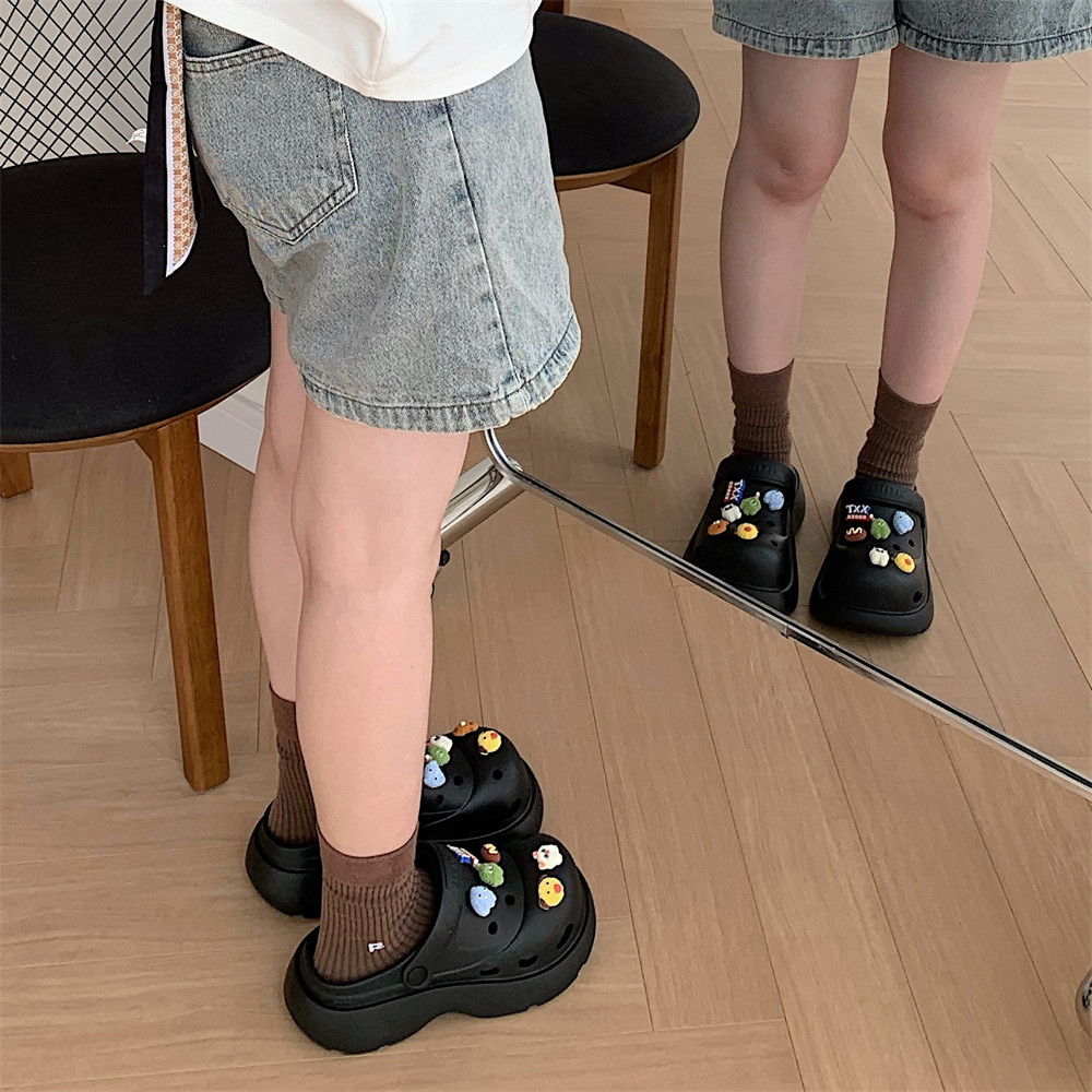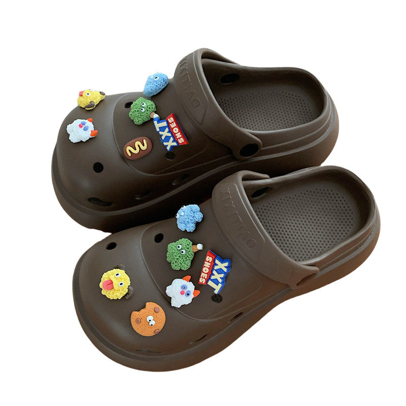 细细条卡通小怪兽包头洞洞鞋