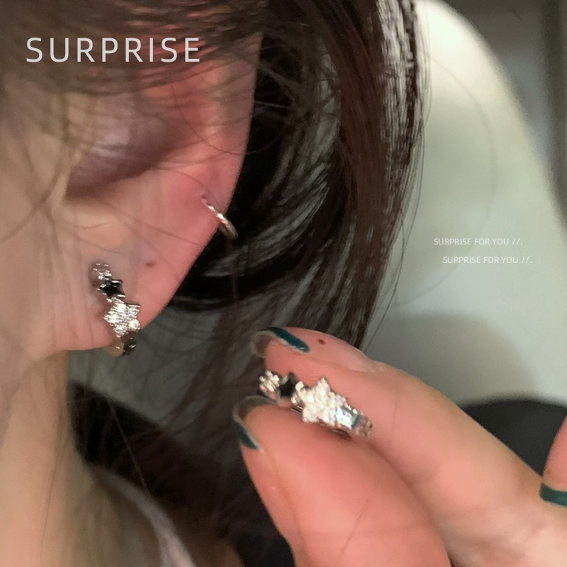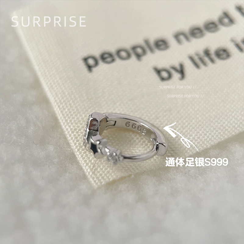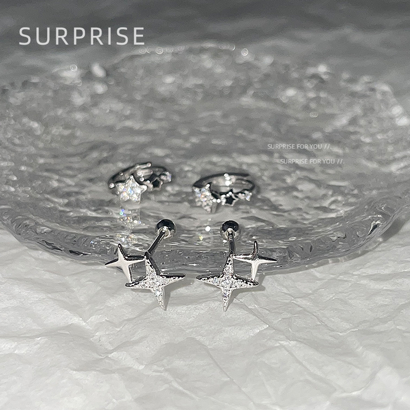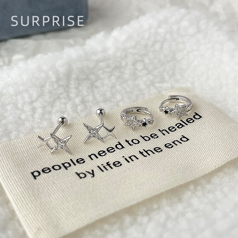 Surprise 999纯银四芒星耳钉女养耳洞睡觉免摘耳骨环小众设计耳饰