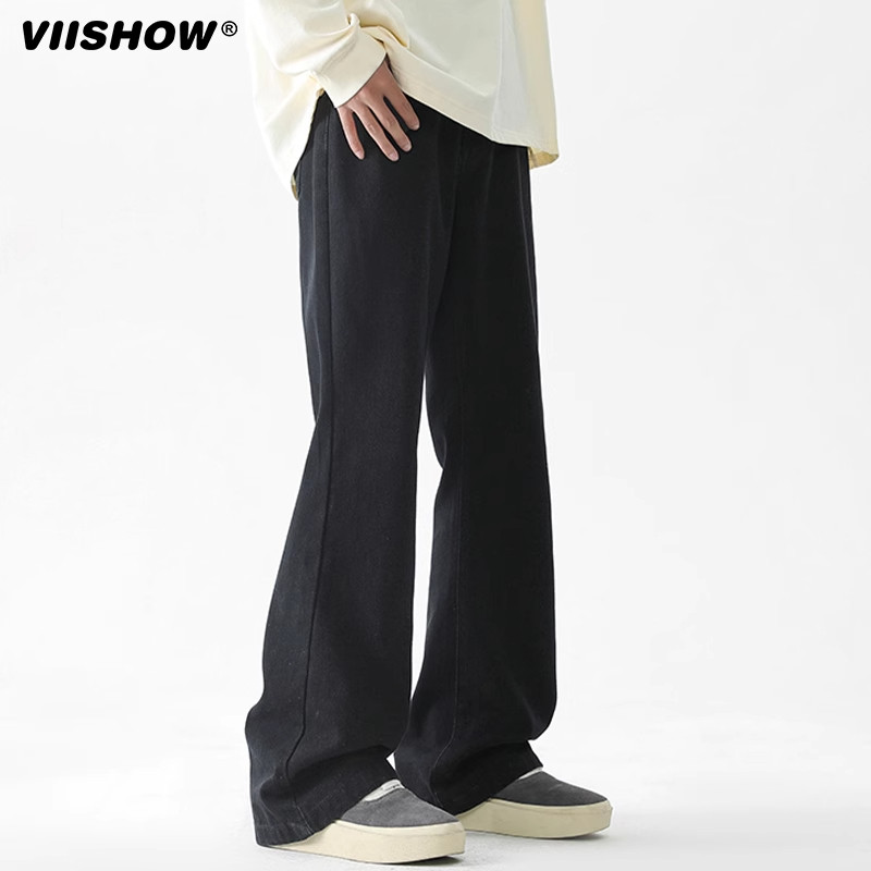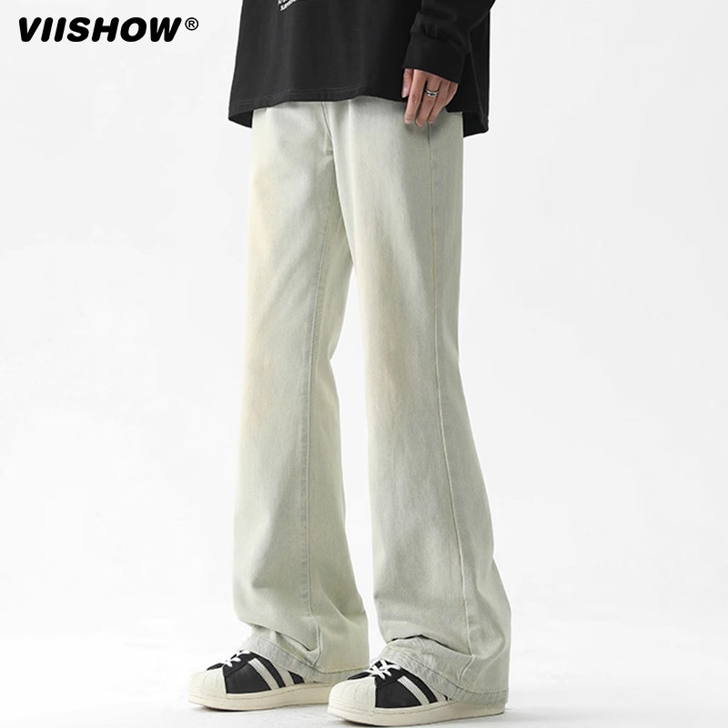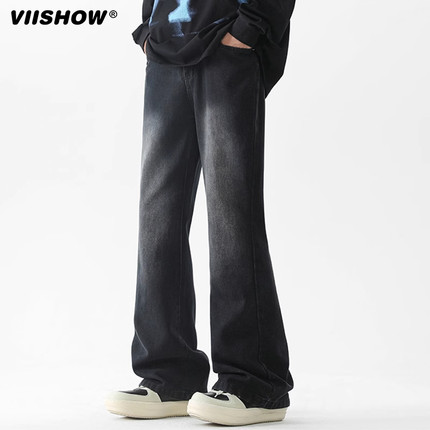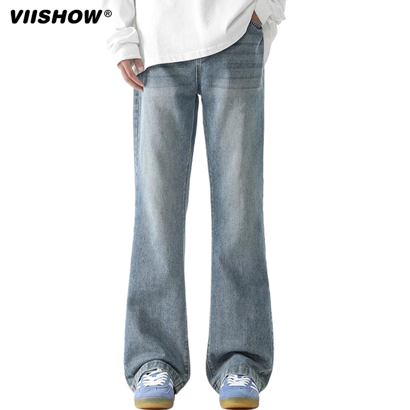 VISHOW微喇牛仔裤男士春季美式复古水洗直筒裤潮牌痞帅炸街裤子