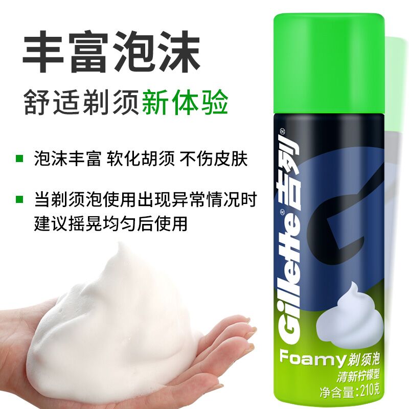 吉列剃须泡刮胡子泡沫啫喱男士手动剃刀片柠檬薄荷瓶剃须刮胡泡