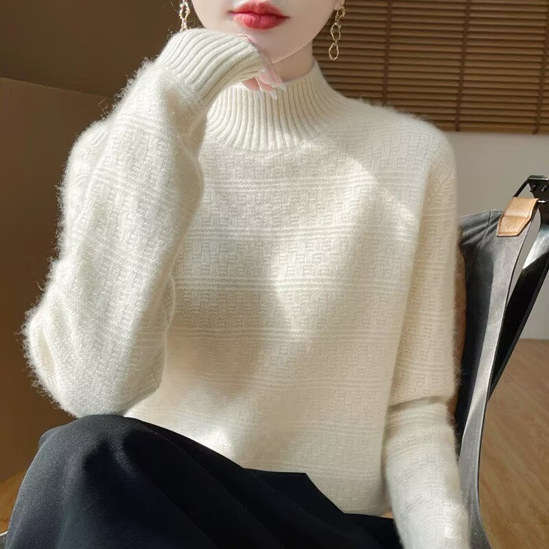 2025秋冬新款加厚纯色羊毛衫女半高领内搭针织打底衫上衣宽松毛衣