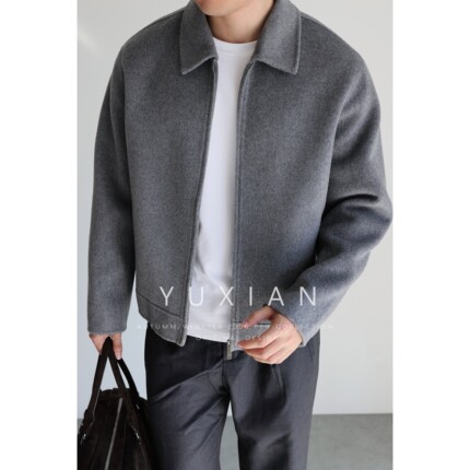 【羊毛山羊绒】意式老钱双面毛呢翻领廓形夹克休闲外套秋冬季男士