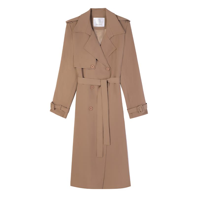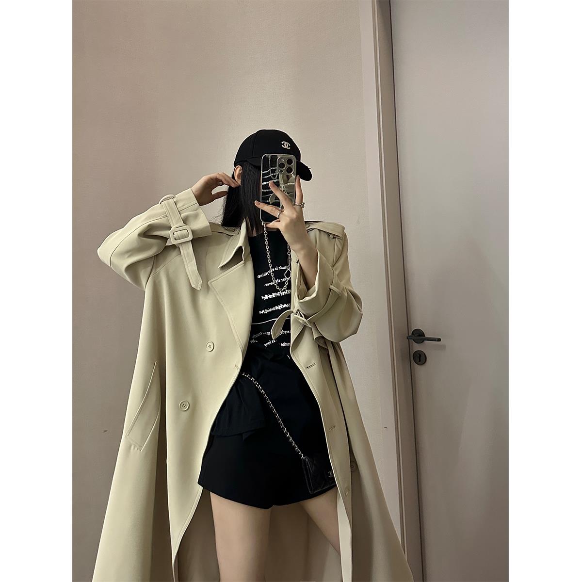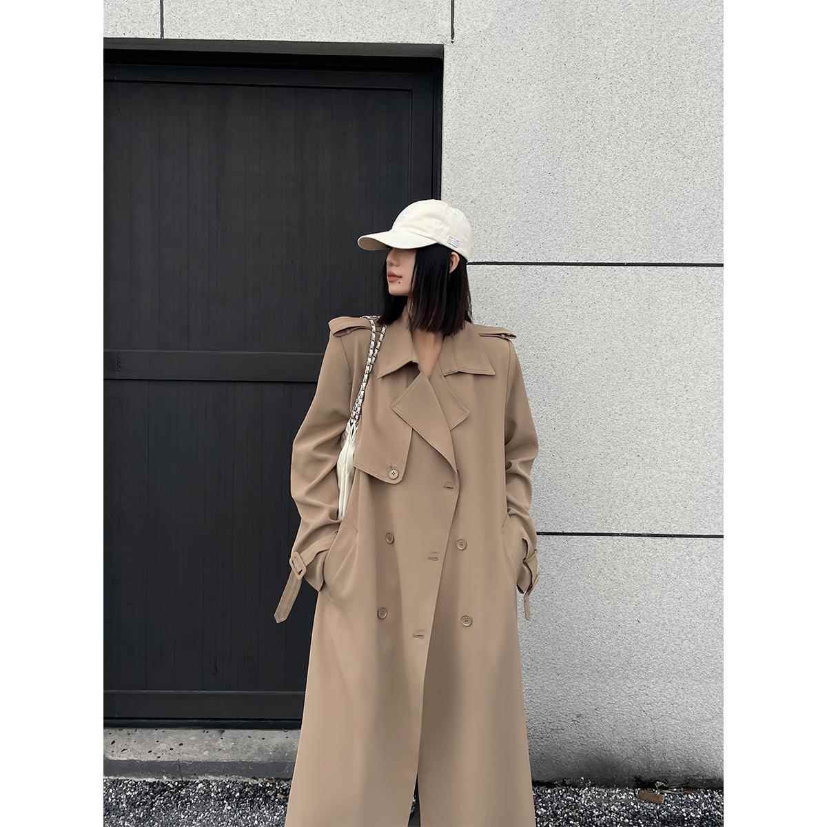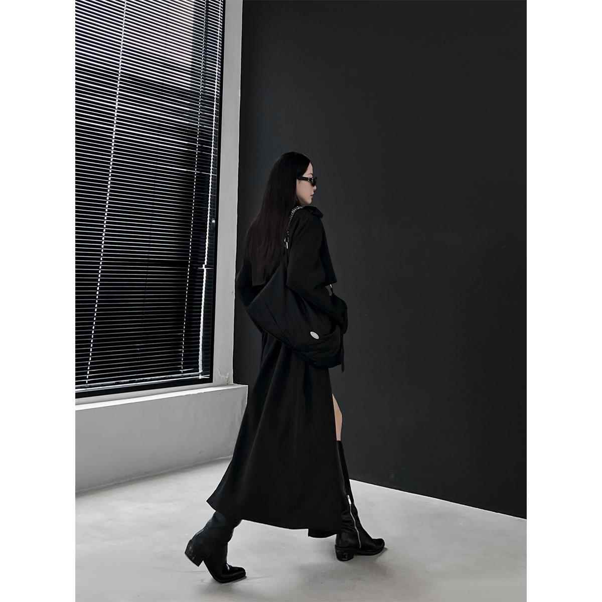 PAPERLLL长版黑色风衣女款2025新款春秋休闲 外套收腰高个子大衣