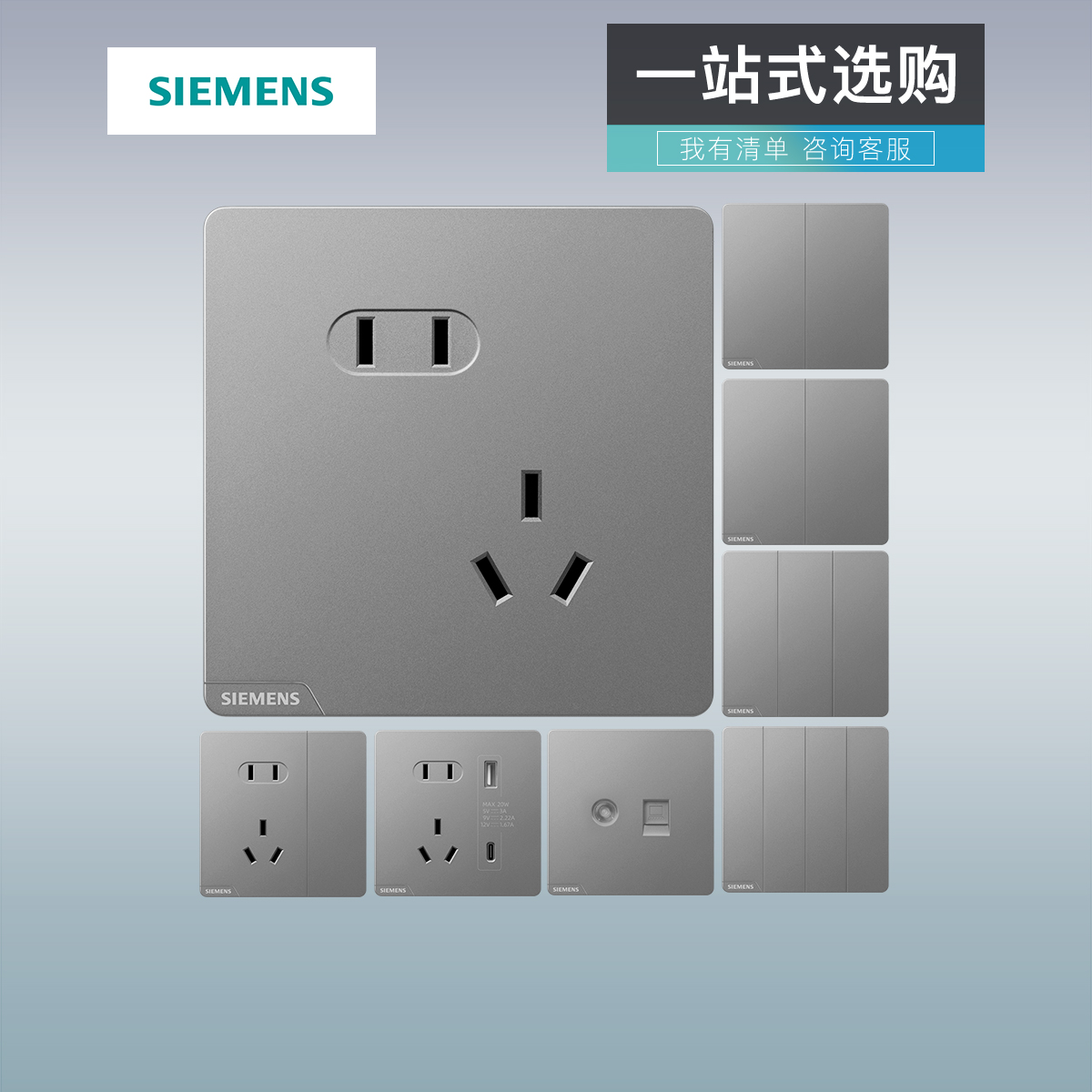 西门子开关插座皓彩皓月灰无框面板10A五孔一开空调家用旗舰套餐