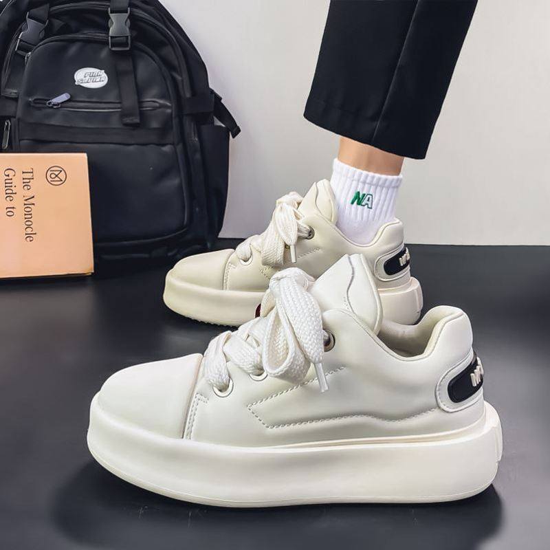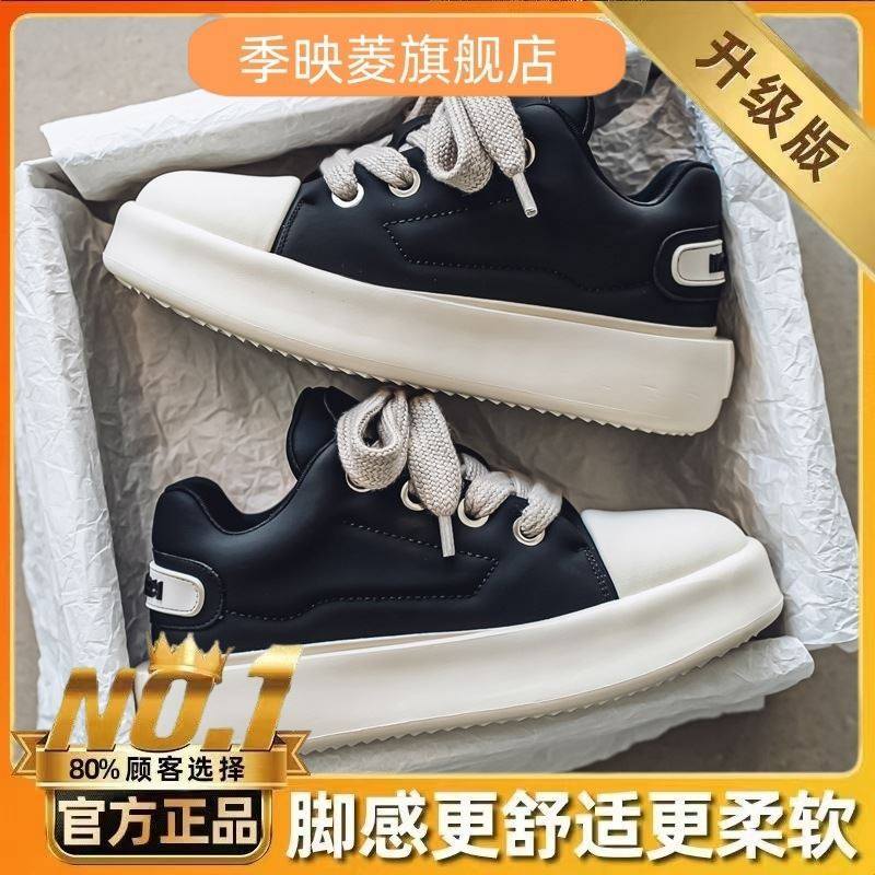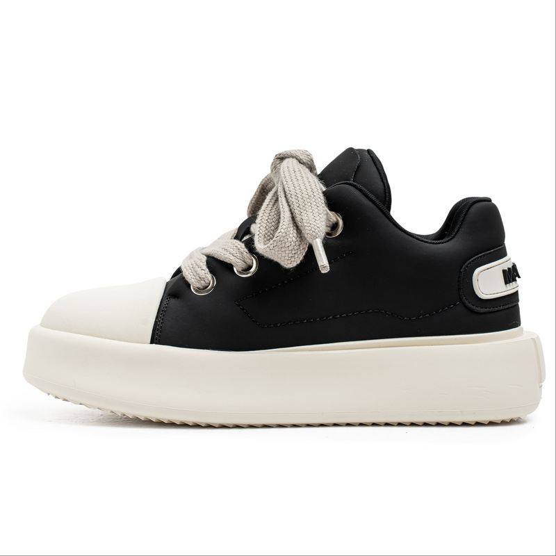男鞋秋季2025新款厚底大头面包鞋青少年休闲板鞋小众日系黑色潮鞋