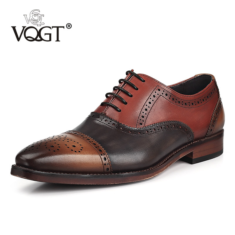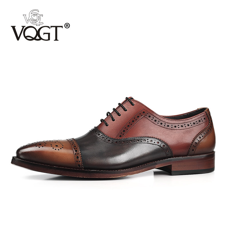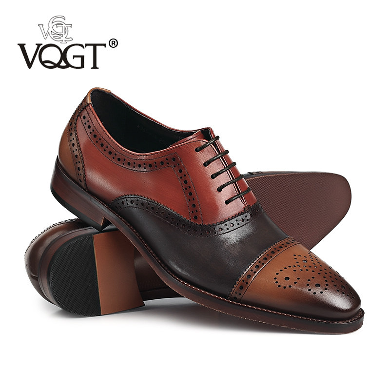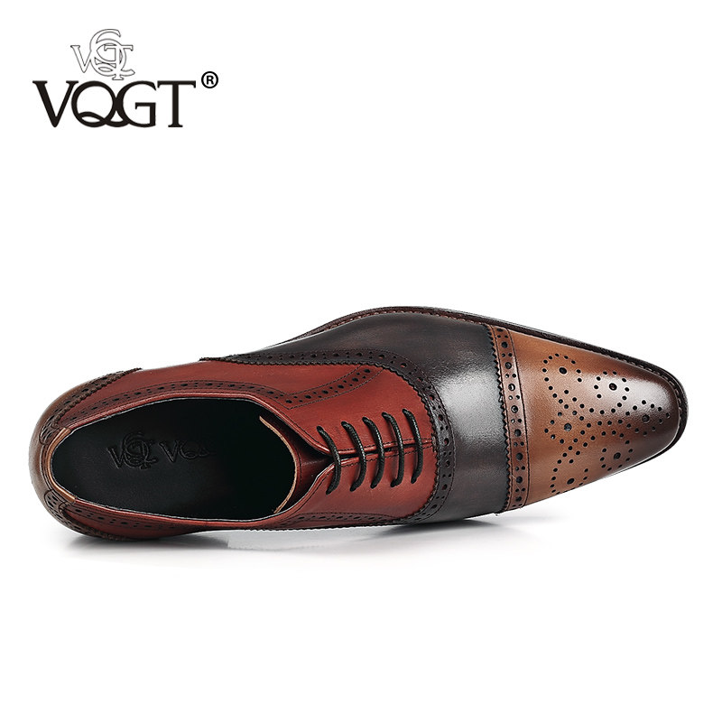 VQGT英伦雕花布洛克男鞋真皮商务正装皮鞋尖头固特异手工牛津鞋男
