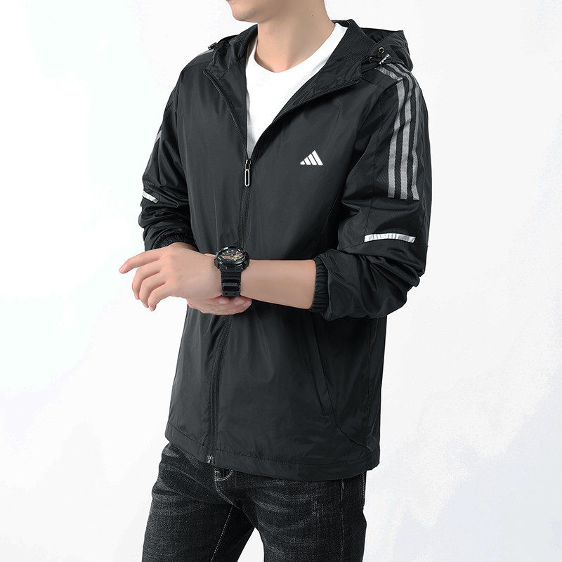 秋冬品牌新款冲锋衣春秋休闲运动风衣男女三条杠健身外套连帽夹克