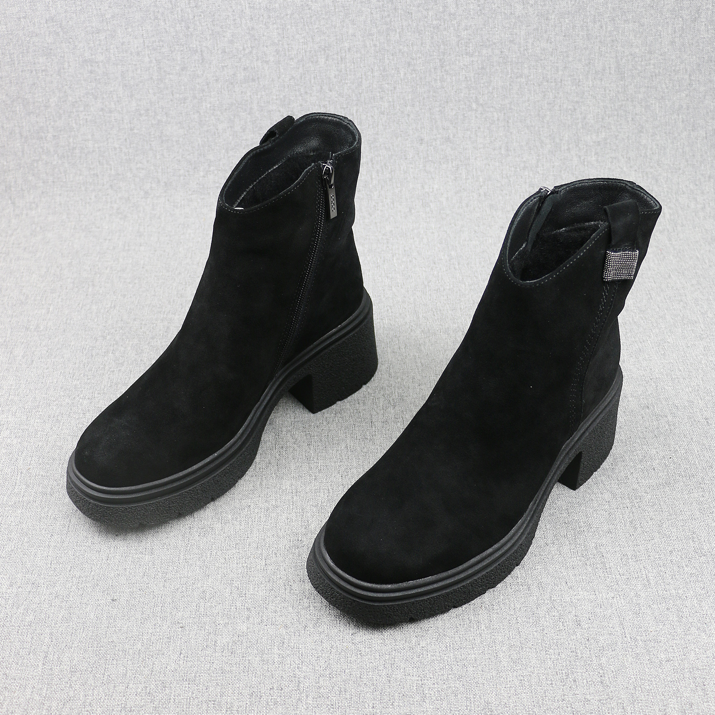 外贸俄罗斯订单反绒皮女士加绒保暖羊毛混纺粗跟棉靴雪地靴子棉鞋