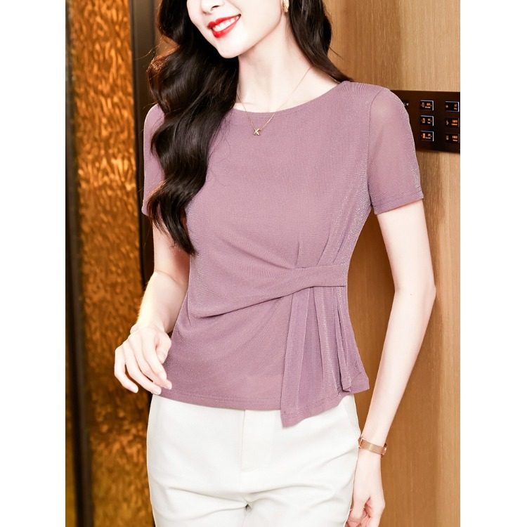 亮丝网纱短袖T恤女夏季2025新款内搭蕾丝打底衫半袖体恤小衫上衣