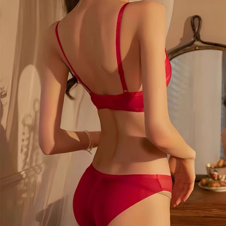 维多利亚小胸聚拢蕾丝本命年文胸