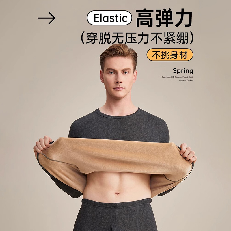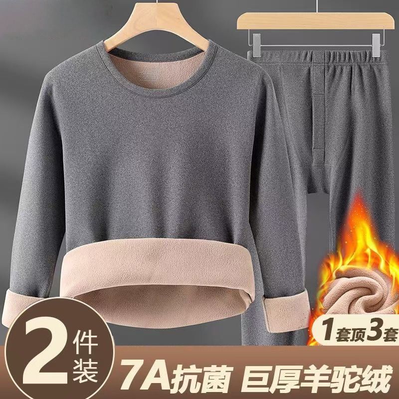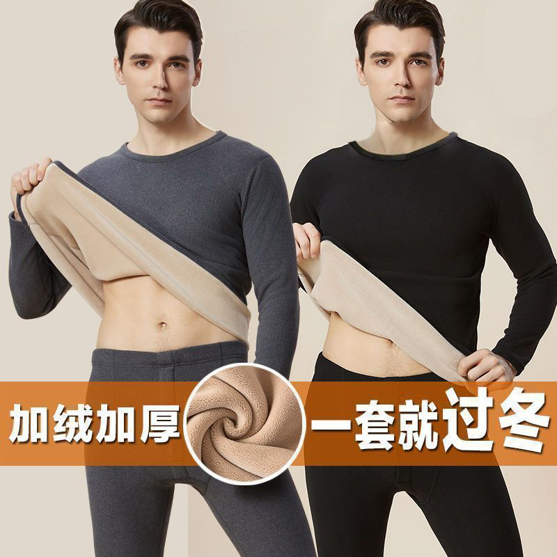 圆领加绒加厚保暖内衣男套装德绒发热秋衣秋裤大码打底奥粒绒套装