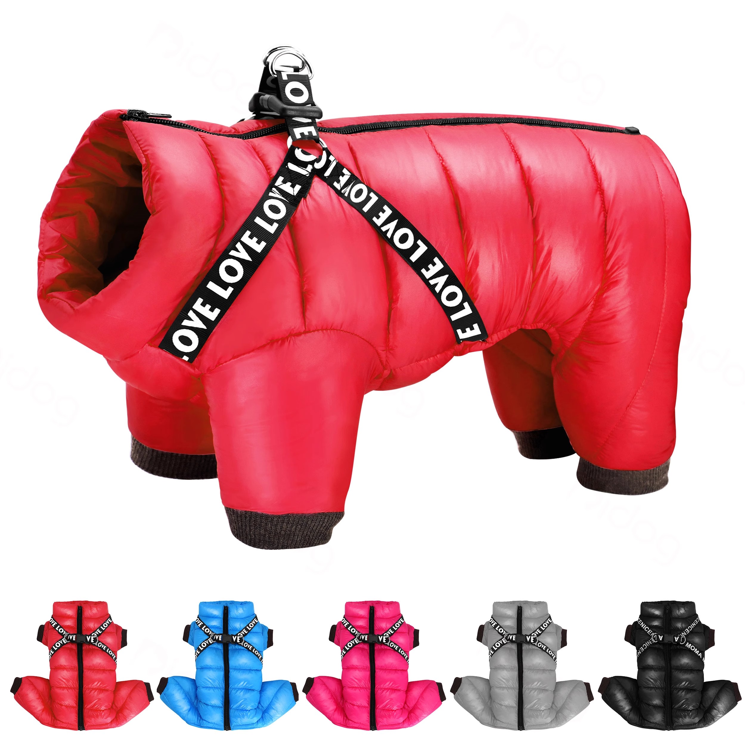 宠物狗狗牵引冬季加厚四脚衣小型犬泰迪比熊防风防寒保暖狗狗衣服