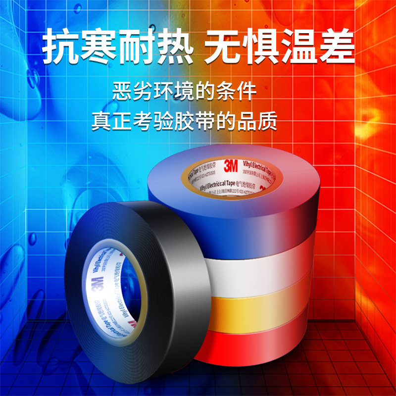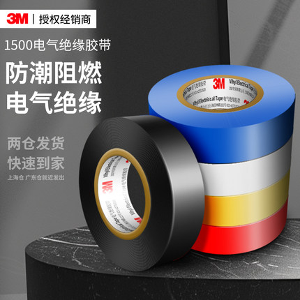 3M1500/1600电气绝缘胶带通用型电工防水阻燃黑色加宽无铅pvc胶布