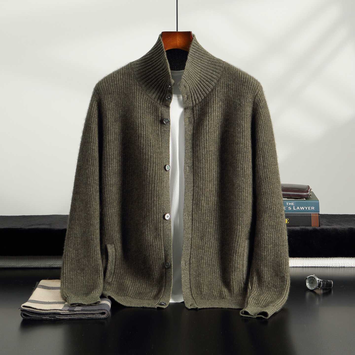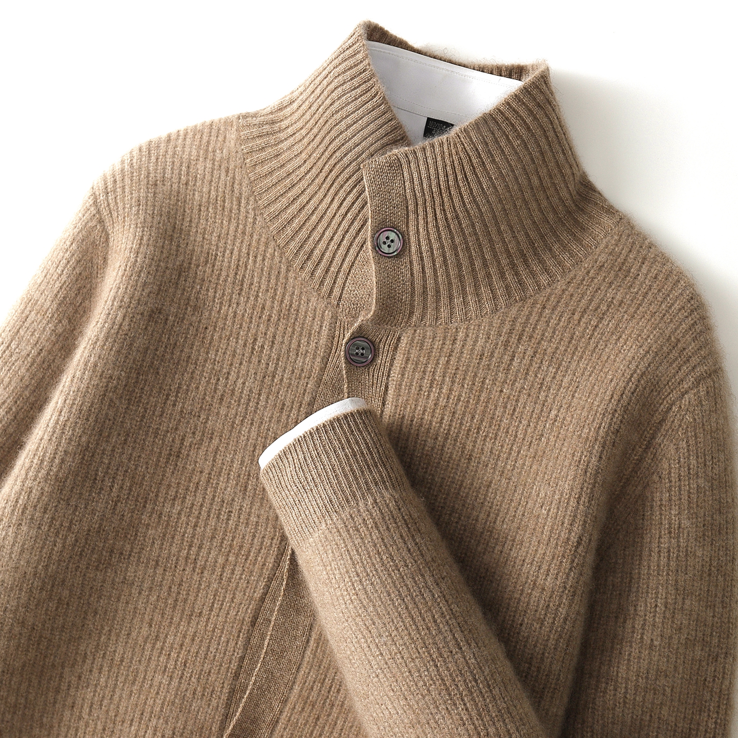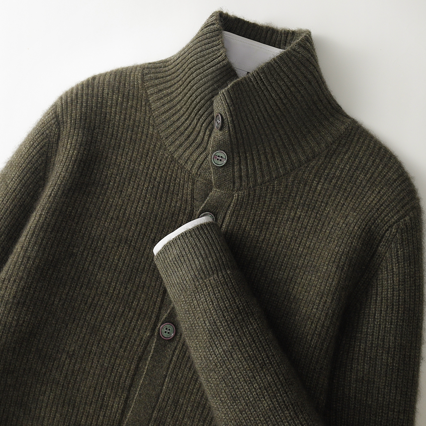 男士四平加厚元宝针系扣羊绒开衫