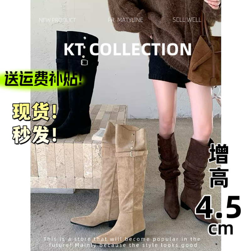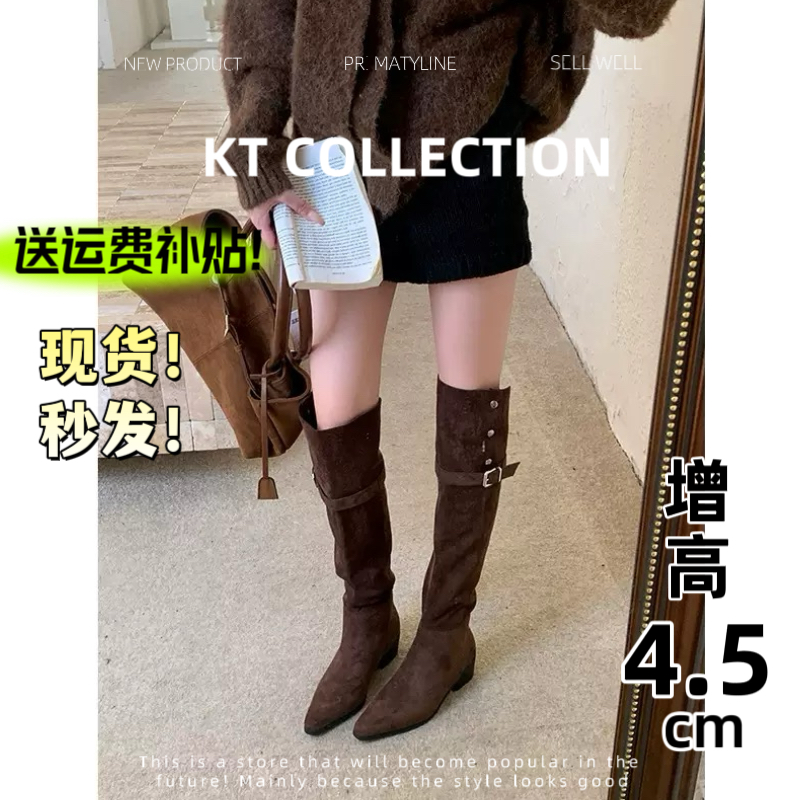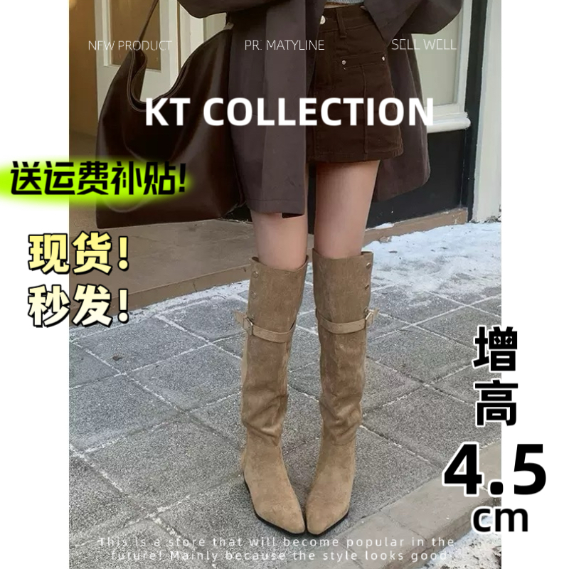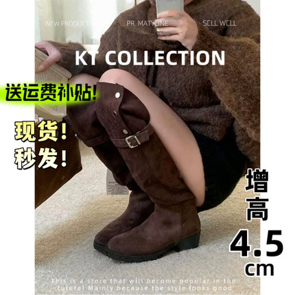 羊皮版!内增高4.5cm~法式复古绒面过膝靴长靴高筒过膝长靴粗跟