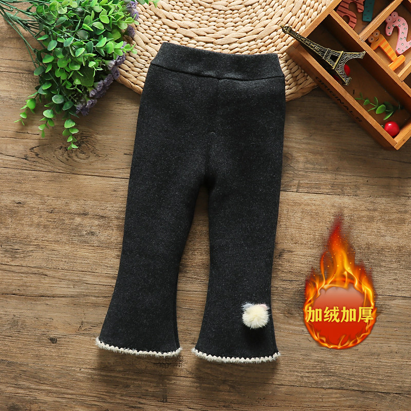 秋冬款女童修身喇叭裤一体加绒打底裤婴幼儿洋气外穿加厚保暖裤子