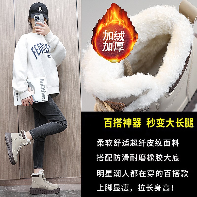雪地靴女2024新款冬季加绒x加厚马丁靴子女鞋短靴保暖防滑学生棉