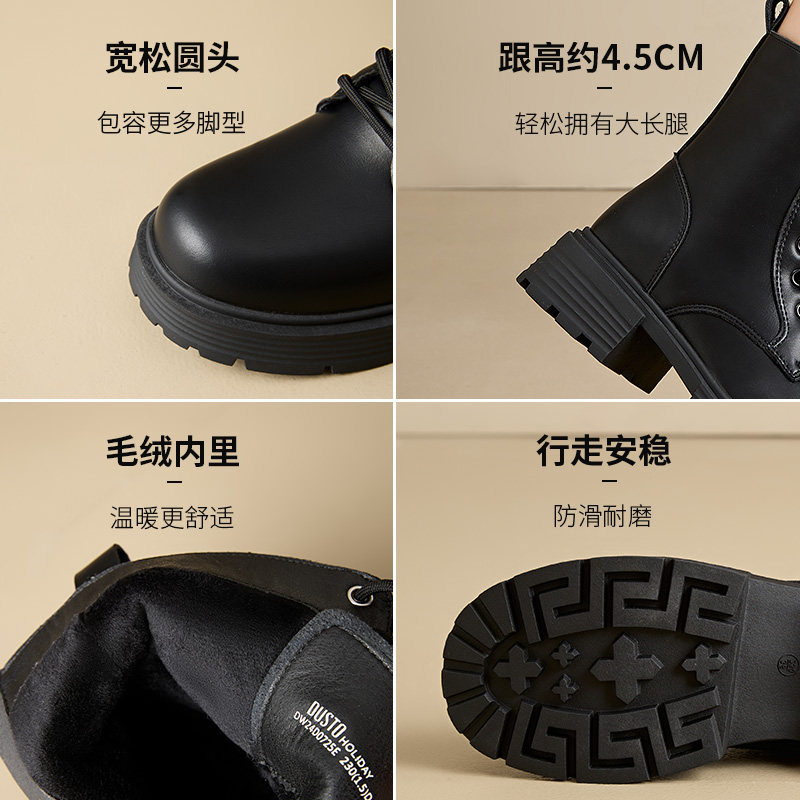 大东女靴马丁靴2025冬季新款经典系带厚底时装中筒靴工装靴英伦风