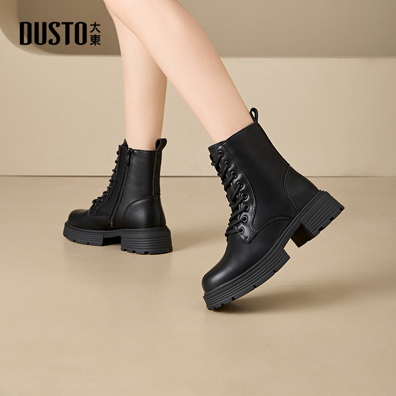 大东女靴马丁靴系带厚底工装靴