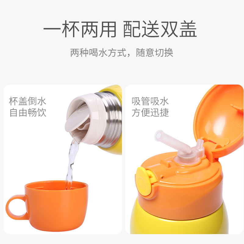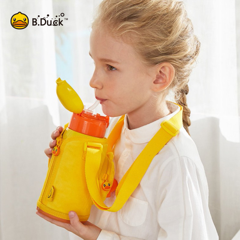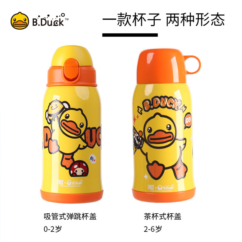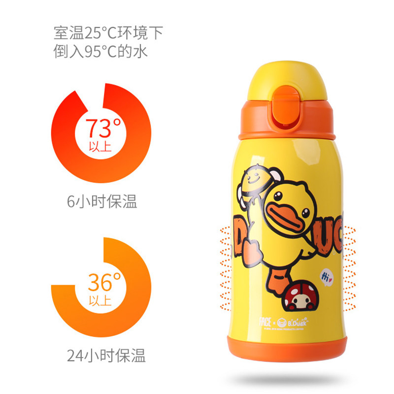 B.Duck小黄鸭儿童保温水壶带吸管316不锈钢可爱学生550ml防摔水杯