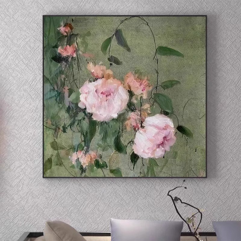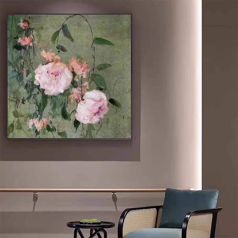 中古风客厅装饰画复古花卉油画沙发背景墙壁画餐厅挂画斗柜摆件画