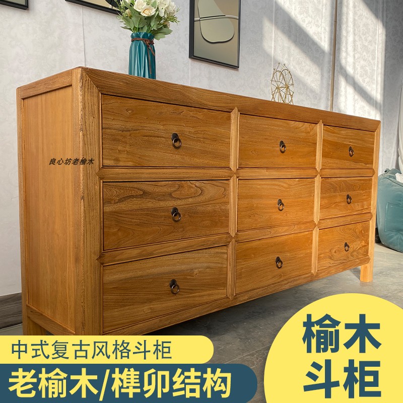 实木九斗柜储物收纳地柜复古中式餐边柜厂家直销老榆木家具可定做