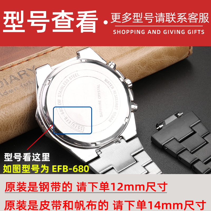 实心精钢金属手表带适配卡西欧Edifice农家橡树EFB-680硅胶真皮男