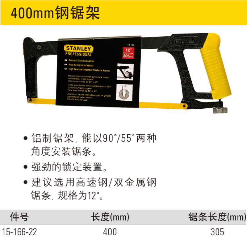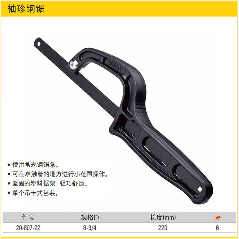 史丹利工具钢锯架迷你钢锯橡胶手柄钢锯五金工具锯弓手15-166-22