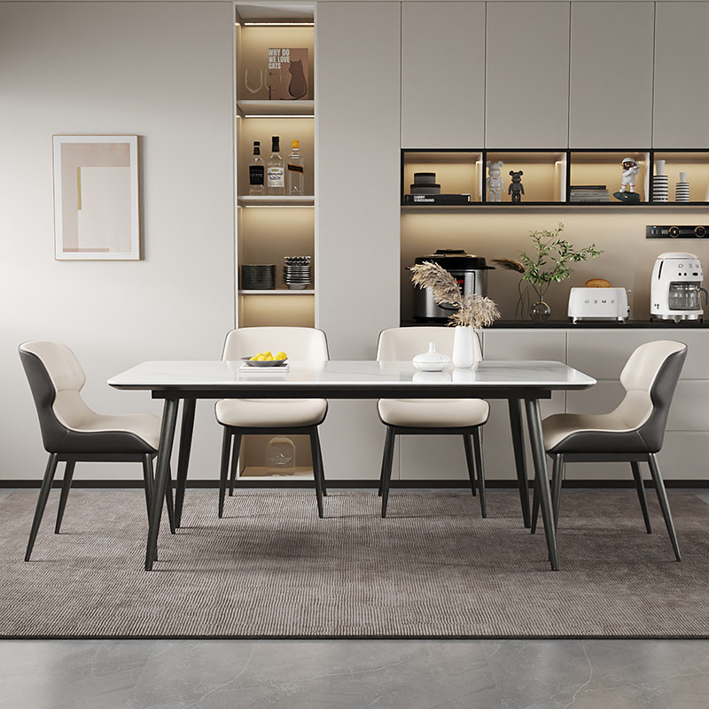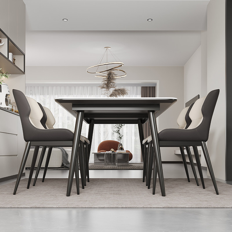 斯帝罗兰意式轻奢全托餐桌岩板餐桌椅组合长方形亮光简约家用依诺