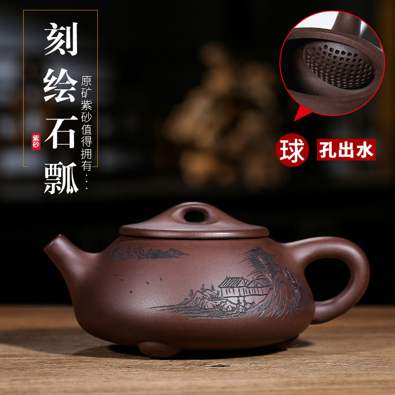紫砂壶宜兴名家纯手工原矿老紫泥石瓢壶泡茶壶家用功夫茶具小茶壶
