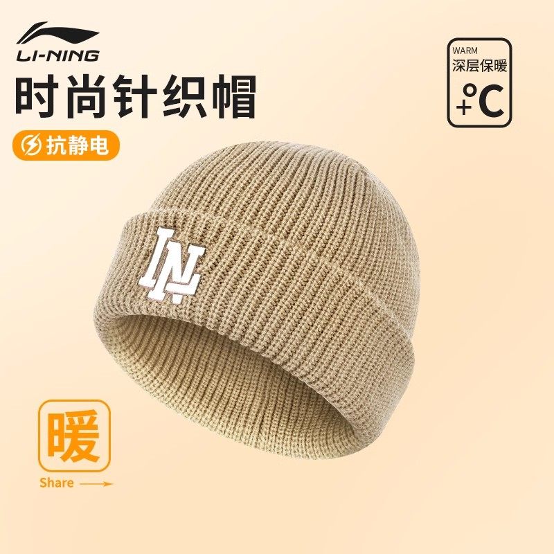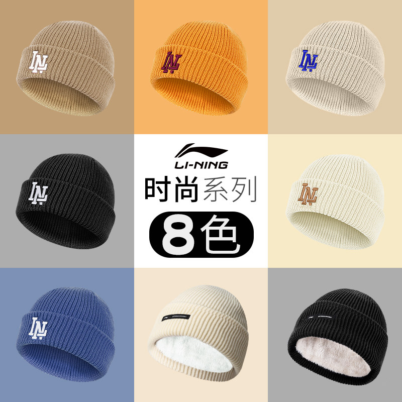李宁新款帽子男士秋冬季保暖毛线帽女护耳加厚百搭黑色针织帽冷帽